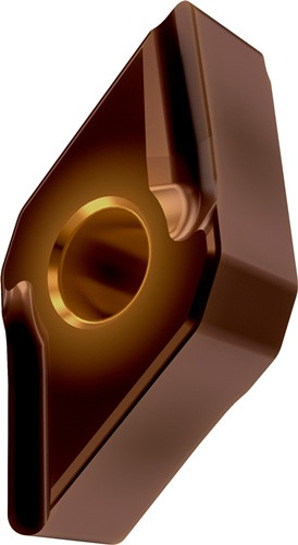 Doppelseitige negative Drehwendeschneidplatte · 55° Rhombisch mit Innenkreisdurchmesser von 12.7mm · 6.35mm Dick · 0.8mm Radius · Indexgenauigkeit nach ISO-Toleranzklasse-M · Spanbrecher SI mit verrundeter Schneidkante · im Substrat T8430 · PVD beschichtet WC-Co Feinkornsubstrat in den ISO-Bereichen P20 -P40 und M20 -M35 · zum medium bis schruppen bearbeiten von Stählen und nichtrostenden Stählen mit einem linksschneidendem Werkzeug