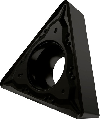 Einseitige positive Drehwendeschneidplatte · Triangular mit 7° Freiwinkel · Innenkreisdurchmesser von 6.35mm · 2.38mm Dick · 0.8mm Radius · Indexgenauigkeit nach ISO-Toleranzklasse-M · Spanbrecher FM mit verrundeter Schneidkante · im Substrat T9325 · MT-CVD beschichtet functionally graded WC-Co carbide in den ISO-Bereichen P15 -P35 und M10 -M30 · zum schlichten bis medium bearbeiten von Stählen und nichtrostenden Stählen