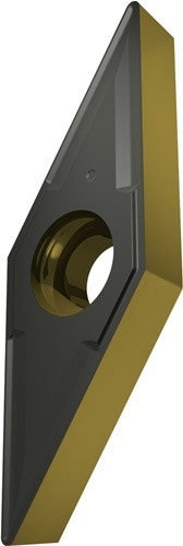Einseitige positive Drehwendeschneidplatte · 35° Rhombisch mit 7° Freiwinkel · Innenkreisdurchmesser von 7.94mm · 3.18mm Dick · 0.4mm Radius · Indexgenauigkeit nach ISO-Toleranzklasse-G · Spanbrecher NF2 mit verrundeter Schneidkante · im Substrat T9415 · MT-CVD beschichtet WC-Co Substrat · zum schlichten bis medium bearbeiten