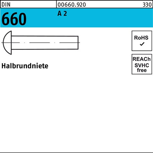 Halbrundniete DIN 660 8x 16 A 2 50 Stück VPE:50