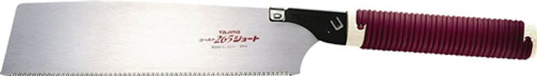 kompakte japanische Zugsäge mit kurzem rotem Griff und 16 TPI Sägeblatt · Blattlänge 230 mm