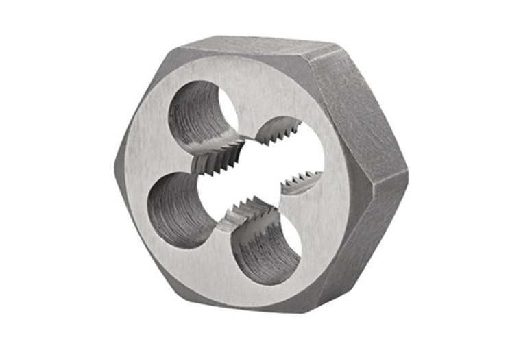 Sechskantschneideisen · ISO-Metrisches Gewinde M4 mit 0.70 mm Steigung und 6g Toleranzklasse · Abmessungen nach DIN 382 Standard mit 19mm Breite über flach und 5mm Dicke · HSS mit blanker Oberfläche Gewindereparatur in Baustahl und Kohlenstoffstahl · Ferritischer Edelstahl und Grauguss · Temperguss · duktiles und verdichteter Graphitguss