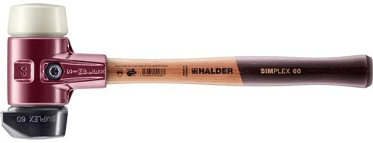2-teiliges Spanngehäuse aus Temperguss · Schlageinsätze und Simplex-Stiel sind leicht auswechselbar durch Lösen bzw. Spannen der Innensechskant-Spannschraube · mit je 1 Stück Schlageinsatz aus Gummikomposition, schwarz mittelhart und Nylon weiß hart mit Standfuß