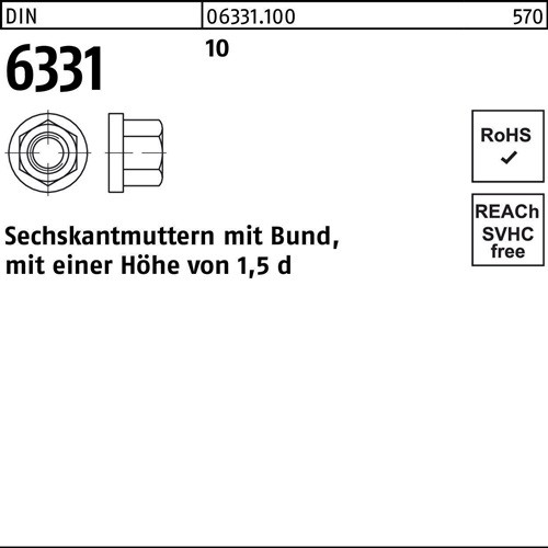 DIN 6331 10 Sechskantmuttern mit Bund · mit einer Höhe von 1,5d - Abmessung: M 36 SW 55 VE=S (1 Stück)